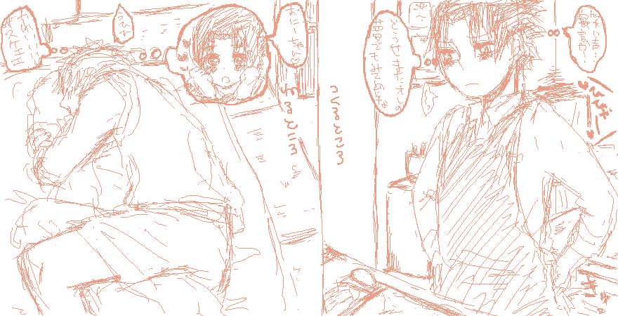 8割できてるけど2割不十分すぎる。 え、これ小説?作文じゃね?作文んんん!! 終わらないよにいさーん!もう面白いのかどうかわからなくなってきた。誰か私に糖分を(;´Д`)ノ もうダイエットなんてやめたい・・・・!いやしかし・・・! パソコンに向かってはいるのですが終わらない。 気分転換にゲームすると、ずっとしちゃうからやめる。ていうか昨日やってて左親指軽く擦りむけた(どんだけー!バサラ2で天下統一モード、7000人斬り+500HIT+究極モード挑戦中) ていうかなにやってんの・・・。 理由:同居人が長曾我部ばかり育てて、私の幸村よりレベルが上になったので悔しくて。幸村は最強でないと! ていうか幸村、政宗、まつ、いつきばっか育ててます。 バサラ面白いなあ……持ってる奴は市でプレイできないのが残念。市可愛い。ヤンデレハァハァ って違ーう!! あああああ・・・・やばいよP数がやばいよ。 足りねーってばよ。改行しまくっても足りないぐらいだよ。考えろ私。書くんだ! なんかこれまで「前記」が最初だったけど、足りなさそうだから「ユーアーマイハピネス!vol.2」って書いてるのが最初のページかもよ。足りないのは初めてだ。いつもはみ出しちゃって、つめてるから。 あ、本は52Pになると思います。まさかの50P超えテラワロス。 いやワロスじゃねーよ!何故こうなったww 小説が半端の長さだから仕方ない。 また叫びにくるかも;;; ろとたんが 義兄弟本に打ち合わせの際描いてくれたもの つまり下の記事の文章は、これをイメージしたものです。 で、原稿がそこまで行かない・・・・が、がんばってるんだけどなあ;; 今小説で19Pあってもっと書き足すから、ろとたんの漫画と合わせて36Pかなあ・・・? いやもっと行くかも;;んん~~ とりあえず絵を自慢したかったんで許可もらってUP。 特にナルトのポーズとかイメージぴったりすぎる。あと背景。 これだよこれ!! そんでナルトはサスケがだいすっきなの! ろとたんの絵は理想的すぎる。サスナル二人とも可愛いの。 最近本誌とかアニナルDVDとかCDアルバム(はまだ買ってないけど侍EDノンクレジットが気になる)ヤバイです。 サスナル一本の人はいいですけど、イタサスラーでもある私は・・・2つにぐっらぐらですよ(´ll`) 今週のジャンプの表紙と最後のコマとアニナル再放送について同居人に熱く語ったぐらい頭パーンですよ。 同居人「何かを感じ取ったからこそ、イタチはサスケを強く育てなきゃって思ったんじゃない?(で、アニナル再放送の「愚かなる弟~」につながる)」 宇佐美「同居人、愛してる。お前最高だ」 同居人「ちょww」 こんな会話をしてしまうぐらいハァハァなわけでして・・・ くっ、やはりどっちも好きだ!!サスケを幸せにできるのはナルトか兄さんしかいないよ! 別にね、サスイタでもいいんだぜ!それはそれで萌える。ただ宇佐美が描くのが難しいってだけでな! この思いはー♪止められなーい。好ぅきだぁよーーーー!♪(夏しか活動しないバントの古い曲) 続きは拍手返信ですvvいつもありがとうございます^^
