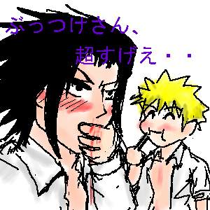 そのくらいナルコ原稿が進んでないんですよ。(鬼ヤベェ!!) 今日1週間ぶりに進んだ。どう頑張っても宇佐美はイタチさんをうまく動かせない。 だったら笑いに逃げるしかないじゃないか!!!(UPの前に言い訳) 今日か明日に更新できたらいいなあ・・・ふふっ。 本編がオフ本で、サスケ視点がコピーとかどうだろう…。 サスケにとってイタチさんはスーパーヒーローでありちょっと意地悪でダメな所もある兄だといい(笑) ナルコのうちは兄弟の家事担当はサスケです。 しかしほんとに早く拍手SS変えたいんだけど…!! エロボタンにして、「押す人はエロい人です」とかやりたいんですよ!! まだナルトが指くわえてるところですねー( ̄皿 ̄;;) 拍手押してくださる方ありがとうvv PR 自分の脳内では↑のような、あんまり色気がないナルトしか描けないわけですよ。(サスケはぶっつけさんの絵を見た宇佐美だと思ってください・笑) よって色気<可愛らしさ になってしまって、シチュで考えたらもっとエロイ感じになってもおかしくないのになーって思ってたら、 ぶっつけさんの、シャツ前全開ナルトはすごかった。 すごいっていうかヤバかった。 昼と夜の大差とか。 脱いだら、酔ったらすごいんですナルト。考えてみたらナルトは意外と普段の衣服はガードが固いので、修行でもないのにここまで開け放たれたら・・・・・そりゃあ。 ナルト綺麗になったねハァハァ もう肩つかんで自分の方向かせて、唇とか首とか胸とかあらゆるところをサスケに吸わせたい。 襲 わ れ ろ !! 話は変わりますが、 先日武蔵様の絵茶にお邪魔させていただいた時に、「絆で、「いつからいたんだってばよー!」と追いかけっこサスナルは影分身で、本体同士は影で隠れてえっちしている」という絵を描いたんですが(笑) 改めて、絆を見て「アリだな」と思った(笑) もっと時間をかけて(宇佐美書くの雑だから、綺麗に書こうと思ったらすごい時間かかる)綺麗に背景とかも描きたいなと思いました。 逆の方がいいかなー。影分身同士がえっち。 ちょうどサスケが落ちて、ナルトが城に残ったあたりで、影分身が消えて経験値蓄積されてーナルトは思わず座り込んでしまいました。(絆汚しまくり;;) 中に出された感覚だけ蓄積されて、疼いちゃうんだろうなあー。