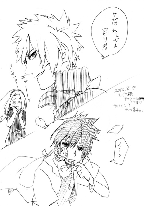 楽しかったですよ。 お買いモノ行って頂いたり、差し入れもらたりお手紙もらったり、感想もらったりいっぱい優しくしてもらった(´;ω;`) ぶわわありがとうございます。 M のなまじ様になっちイメージつきのお手紙いただいたり、 ※うちのスキャナの精度がアレですが実際はもっと美しい塗りです(´;ω;`) 綺麗にでなくてすみませぬ なっち絵は特にずっとずっと募集してますので、絵師さんもっとください!!!!!! カケタ素子さんに売り子していただいた、およびチャラメン描いていただいたり 素子さんは今回 にも参加されてますよ。鷹仙ですウホッ 1もですが2はさらにパワーアップされていて特におすすめでござる。 ちなみに私が好きなのは補火と、火暗ナルナルです(*´∀`*)どのSNも好きですけどね。 後日miccoさん(弱ペダ友達)にレポに描いていただいた私の像がサスケだったりww ものすごく嬉しかったから許可もらって今ツイッターのアイコンにしてるwww ペダルのカプの話をしていて暑くなってた。大体こんな感じだったwwww 近々なっちの設定補足ページあげようと思う(=ω=) もっとちゃんとページ整理したいんですよね;; よく考えたらいまだに拍手SSログのやつ、前のサイトアドレスだからいずれ消えちゃうよ;; 拍手押してくださってありがとうございます。(´;ω;`) 栄養です。
