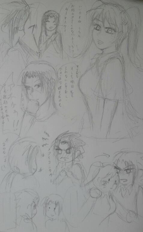 「誠SORRY」フイタwwwwww こんな雰囲気のSN書きたいですwwwwwww 陰陽師同士SNとかどうだろうか?www(※サスナルっぽい曲ではないです) 今日ごそごそと小説部屋整理したらすげー疲れた(´ω`) あれは再録してよかったのかとちょっと不安。 いや・・・・・なんか・・・・・えろくね?公開して大丈夫かな(;;`・ω・´)びくびく という不安と 宇佐美さん今退化してね?と思われる不安だ。 いや後者は事実なんだけども;; もう少し見守ってやってくだしあ。充電中だ。 WEB拍手ログは一時ピクシブを倉庫代わりにしてるが、これもしばらくたったら消すかもしれない。 あんまり気に行ってなくて;;手直しも仕様がなくて;;; サンタはもうちょっと改良できないものかと思うんだが;; 再録ばかりじゃあれだなあと新作うpしたかったんだが、今できそうなのって「あまやどり」なんだよ;; 前 秘密の特訓の最初の話だけうpしてたけど・・・・再うpするか迷う。 再録本はナツコミで売り切れたばかりだからな・・;;; 家族ものはうpはオンリー後かなあ・・・・?? むしゃくしゃしたらうpするかもだが。 絵も描きたい描きたい(ごろごろごろごろ) 原稿やらないと→出来てない部分のネームを描く→ちょっぴり進む→まとまらない→白いスケブをただ見つめる時間 →もうこんな時間たってる原稿やらないと イザナミだ! しばらく日記で愚痴ることが多くなると思います。 宇佐美は原稿が差し迫ると更新が増えるタイプです。 孤独感に耐えきれない。\(;´Д`)ノ ワァァン