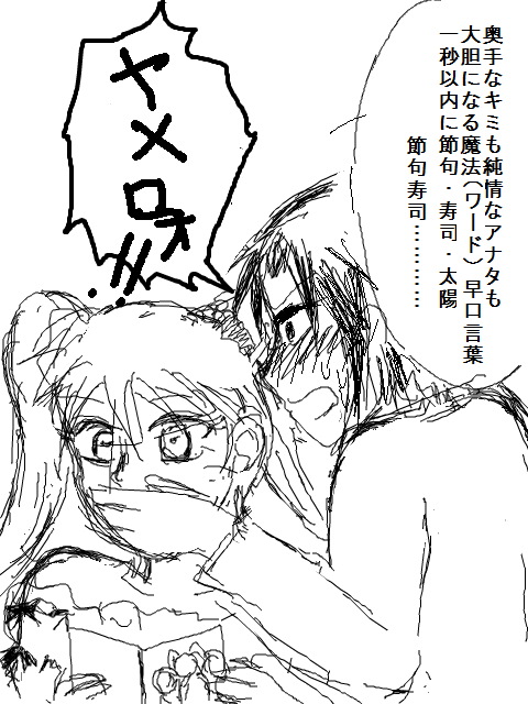× [PR]上記の広告は3ヶ月以上新規記事投稿のないブログに表示されています。新しい記事を書く事で広告が消えます。 オレのご主人さまは普段はクールなんだけど、寝起きはあまりよくない。 低血圧というやつらしい。 オレは毎日一生懸命起こしていたけど、最終的に今の形………オレを抱きしめて口の中をもぐもぐする形に落ち着いた。 それが一番目が覚めるんだって。 オレは何度しても慣れなくて、尻尾をパタパタ動かして震えてしまう。 そのたびくすぐったいとご主人さまは笑う。 いつか慣れる日がくるんだろうか。 こんばんわ宇佐美@サスナルホモォくれよです。 3連休そこそこ書いたけど1本仕上がることはなかった(´;ω;`) ワーン ある素敵なサスナルを見ていい意味で胸がきゅーんと切なくなったのだが、宇佐美には逆立ちしてもこんな切なくて幸せなサスナルは書けないなぁと思った。 すれ違いサスナルは読むのは萌えるけど書けぬ。 すれ違っても最後は呆れるぐらい幸せじゃなきゃ嫌だ。書くんだったら。 サスナルはもっと幸せでいいんじゃないかなあ。 切ないの憧れるけどね!どう頑張ってもわかりあえないけど、どんなに辛くてもずっとそばにいるとかさー憧れるけどね! 切ないから始まっても残り10行でラブendにするからね! なんか・・・・飢えてる・・・(;´Д`)サスナルぅ・・・。 もうネタだけ書いていいかな。作文とか。 原稿をする→止まる→前考えたネタを思い出す→書きたいなあ→時間ねえよ。 いつもこれだね。 でもなんか仕上げたいなあ(´ω`) なんか・・・なんか・・・・・なんかさすなるううううう!(発狂) 時々サスナルかかなくても平気なんじゃないかって思うときがあるんだけど、(たくさん描く人いるし、満たされるし) 無意識にネタ考えてしまうし、理屈じゃないんだよなああああ(ごろごろごろ)理屈じゃなく感情なんだよ。 でもイベントになるとハンターになりたいです。 これも毎回言ってるなあ・・・。冬はハンターだぜ・・・ふへへ。 PR 昨日下の日記書いてからエチャにお邪魔して、そのあと少し原稿やったんだが、 サスナルが・・・・すごく・・・・リア充バカップルだんだけど大丈夫か? どこを切ってもいちゃいちゃしてるよ!びっくりだ。 え、サスナルってこうだったっけ?? どうしたこれ・・・どうした・・・。エエエエエ(´Д`)エエエエ あとさぁすごく今さら何だが・・・私の書くカカシ先生ってなんか言葉づかいおかしくないか? それを言ったらサスケもなんだが・・・・うおおおい! なっち読み返してて「んー?(´`;)」となった。もうちょっとカカシ先生って砕けたオネエ言葉だよな?www ま、アンソロではそんなにカカシ先生出す気はないけども。 もう自分の話のネタバレしたい・・・(´q`)でもネタバレしたところでそれが本に収録されるかどうかわからないしな。 ネタ候補が多過ぎる・・・・。でもすでに書き始めてるのはまだ4つか・・・・・ どうしても資料がいるなあ・・・・・(´q`)宇佐美はファッション誌とかマジ買わないタイプだがこれは買ってイメージ広げないとどうしようもならない。オサレじゃないから(ノノ) (((((((;´Д`))))))))オワルノ? てぶろにかいた(テンプレ仕様ですよ↑)http://www.pipa.jp/tegaki/273159/18876713.html なっち設定を考えていたのだが・・・ このサスナルさ・・・・・・ラブラブじゃないか!? 私が書いた本で一番相思相愛なんじゃないかな!? いや大体私のサスナルって相思相愛だけど、なっちのナルトってサスケに対してツン要素がほぼないから、 ナルトは自分自身も演じているなっちも誰よりも見てくれるサスケが大好きで愛されて嬉しいわけで。 サスケもナルト大好きで、ナルト委愛されて嬉しいわけじゃん。 そもそも好きになったのはナルトからだし。(ナルト・・・から・・・・んーまあその前にサスケはなっちを好きになっているわけだけど) そうなってくると・・・あれ・・・なっちってさ・・・なっち1は18禁ではないし2も、私が入れたかったから入れただけだけど、このサスナル結構激しいプレイしてもおkなんじゃね?とか思ったりする。 いやプレイじゃなくてもいいんだけどなんかイチャイチャさせたい!!!いちゃいちゃサスナル書きたいうおおおおおおおおおおおおおおおおおお。 そんなこんなで、3連休の一日目が過ぎていく・・・・・あ、明日こそもっと原稿書く;;; なかなかうまくいかないですねー。サスナル愛は盛り上がってきてるけどな。 ↑愁さんちのサスナルコエチャにて。愁さんのナルコがあまりにかわいかったので変態サスケ描いてみた。 たまに絵を描いたと思ったらこれだよwww 今宇佐美の頭を占めてるのが、同人じゃなくてダイエットかもしれぬ(ーー;) 目標がマイナス6キロで、今2週間たって2キロやせた。目標達成したらサスナルフィギュア買ってもらえるのだ。 まぁ前々から下半身の肉が気になってはいたし、夏で痩せやすいし、頑張ってる。 甘いものが食べられないのが辛い(´;ω;`) イベント時に頂いた差し入れと