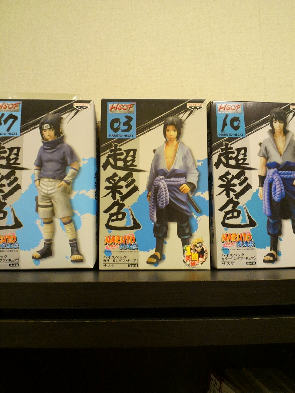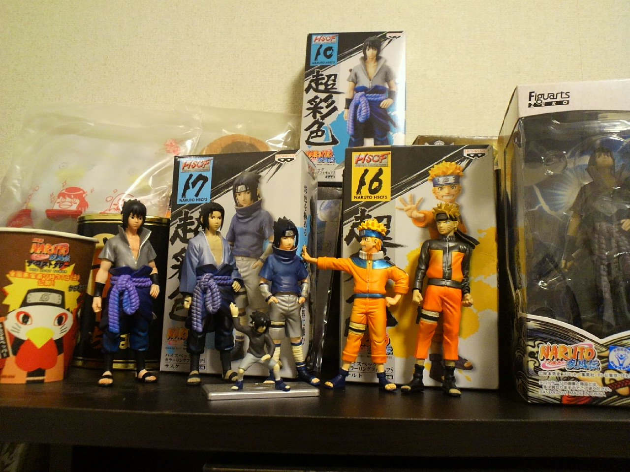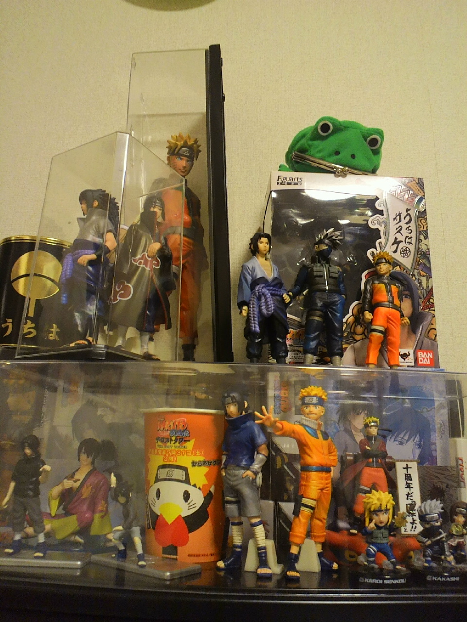 話聞いてくれた方も拍手くれた方も通販申し込んでくれた方もありがとうございます。 それでも1月の新刊は 出る とは言えないです。努力はするが。 でも高銀プチオンリーは参加するんだよなあ・・・・。ごめんよう。高銀好きなんだよ! なぁ・・・ちょっと聞きたいんだが1月の新刊は義兄弟本4なのだが、それが出なかった時、全く予定してないサスナルコピー本でも出てたら嬉しいのかい?(・ω・) ご意見プリーズ。 正直オフ本は出ない可能性が高いな。宇佐美らしくないけどな。 時間じゃなくてやる気の問題でね。 いやいやしかし締め切りはすぐそこやで・・・・努力はたまに裏切るが怠惰は決して裏切らないという言葉があってただな ガクブル。 数日前 ゲーセンで新しいナルトフィギュアが出ましたね(超彩色17) 財布がぺたんこになりながらも4種ゲットした私はこれを機にようやくこれまで会得したフィギュアを飾ることにしました。 ごらんください。腹チラでございますwww 私自分が持ってるサスケフィギュアでは1番か2番目に好きですね。一番は超彩色10の白羽織サスケかな。 あ!あとナルト!今回の1部ナルトの顔は今までのフィギュアの中で一番いいよ! ナルマニなら買ってでも手に入れた方がいいと思う。ほんと可愛いんだって!元気いっぱい少年ナルトだ!っていうナルト。下の画像の1部サスケと一緒にいるやつです。 検索してみて!マジで楽○とかで買うといいよ!! そんなわけで百均に行きフィギュアケースなるものをゲットして飾ることに。 何気にナルトのフィギュアって集まってるんだよな。通販だと遠いんだけど、ゲーセンだと見ちゃうとプレイしちゃうんだよね。でもほんっとに次回からは通販にするう・・・サスケ以外は随分金かかるんだよ。今回イタチ兄さんとマダラゲットがまじつらかった。感動もひとしおですけども! しぼりとられたなあオイwww フィギュアケースを買う前はこれで 一番左はローソヌのからあげ君。こっちでは紙製しか販売してなくて、どうしても欲しくて販売期間後展示品をお願いして譲ってもらった。 一番右の見きれているのが、下の日記で言ったフィギュアアーツのサスケね。 これらにカカシやイタチやマダラを加えてケースに飾るんだ。 何度も倒れるカカシをどうにか寄りかかせ、あとは蓋をかぶせるだけだ。 ガチッ☆ カカシ、マダラ、イタチの頭がでかすぎてしまらない。ええい!奴らは別枠だ! ガチッ☆ 今度は2部のサスケとナルトが入らない。 ……………………。 カポッ こうなったwww 高杉も入れました。 サスケ、イタチ、マダラは 別のフィギュア入れてたやつを変えて。 でっかいナルトはナルトでケース買ってきたんだけど幅ギリギリでしたね。 つーかガシャポンはあっても基本フィギュアってナルトしかないなぁ。 お部屋の一角はこうして飾られることになりました。 つーかこの部屋自体あちこちにナルトグッズ飾ってますが。 ご当地ナルトとか、キーホルダーとか、ナルトキューピーが今部屋の中で行方不明であわわわっ 来月か再来月、1000ピースのナルトパズル欲しいなあと思ってる。サスケの章パズルは既に飾っているのだ。 もうちょっとお部屋がきれいだったらお部屋ごと写メるんだが・・・散らかってるんだよ。 続きは拍手返信です サイト見てくれててありがとう(´;ω;`) 更新しても意味ないかとちょっといじけていたww←