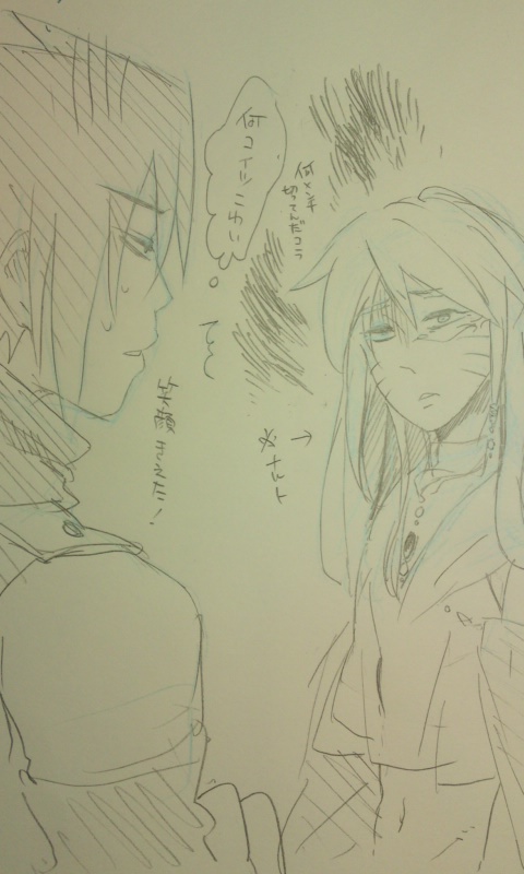 宇佐美が書いた話 後宮サスナルのイメージ絵ェ(;´Д`)ハァハァ 物語の1シーンより ナルトがサスケにガン飛ばすシーンがあるのですww よりによってこのチョイスwwww サスケカッコイイです(*´∀`)アアン 小吉さんのナルトたんはへそ出しですぞ!!!それでサスケを誘惑すんだって!うひひっ 宇佐美はノースリの方が好きですvv 小吉さんは書くのめっちゃ早いので、エチャとかもたくさんログあるのですが、 そこはだいたいあますところなく、ハニーの伊達丸さんがUPしてるからなあ・・・ 唯一伊達丸さんがたまたま席をはずしていた時に描かれていたもの。 エルシャダイ発売前ェwwww 私小吉さんのサスケがフルボッコにされる話好きvv 別にサスケがフルボッコにされるのが好きなんじゃなくて、小吉さんが描かれるから、絶妙に笑いに昇華されてるからvvv 殴られて鼻血とか頭から血とかリアルですwwwwwwwww 目に影とか たまに荒川アンダー(略)のカッパを思い出しますww 「一世一代のぷ、ぷおぽおず(噛んだ)を!」とか あーサスケ可愛いぜwwww 小吉さんちのサスナルの喧嘩ップルが気持ちよく書けたらいいのになあと、せっせとネタ作ってますよ。 小吉さんいつもありがとう もぐもぐ。 いつでも絵は受け付けてますぜ!